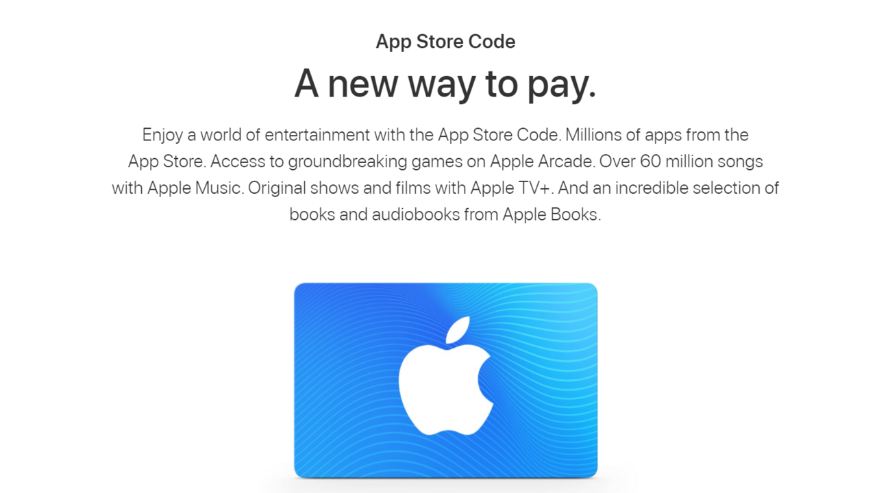 How to Use Your Apple or iTunes Gift Card - MUO You can use an App Store & iTunes gift card for purchases from the iTunes Store, App Store, Apple Books, or Apple TV app. Think of it as credit for virtual products. App Store & iTunes gift cards credit your Apple ID balance, so you can use them for movies, games, apps, books, music, and TV shows. You can also use your credit to pay for other ...